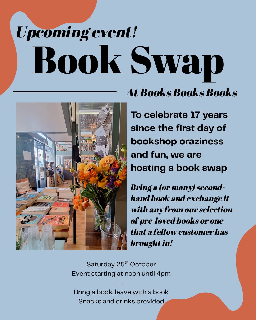 From noon until 4pm on Saturday, October 25th, prepare yourself for the longest night of the year (yes, the 25th is the change of time) by bringing in your well loved and read books and going home with other pre-loved books. Bring one (or more!) gently used books and exchange it with any book from our pre-loved selection, or one that a fellow customer has brought in! This October, our book swap is also a small celebration for our 17 years in service, and snacks will be provided!