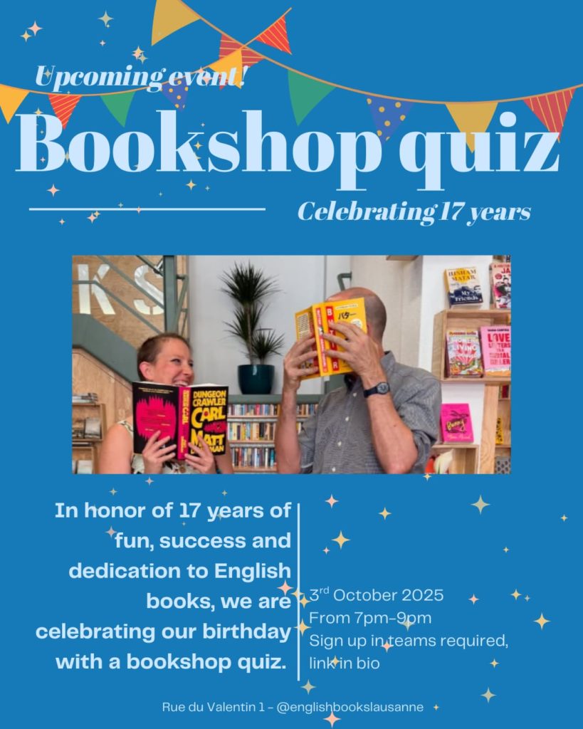 The newly formed Lausanne Poetry Group holds meetings at the bookshop, one Tuesday evening per month for new and aspiring poets. Check out their website for more information on upcoming dates and how to participate! https://lausannepoetrygroup.wordpress.com/participate/